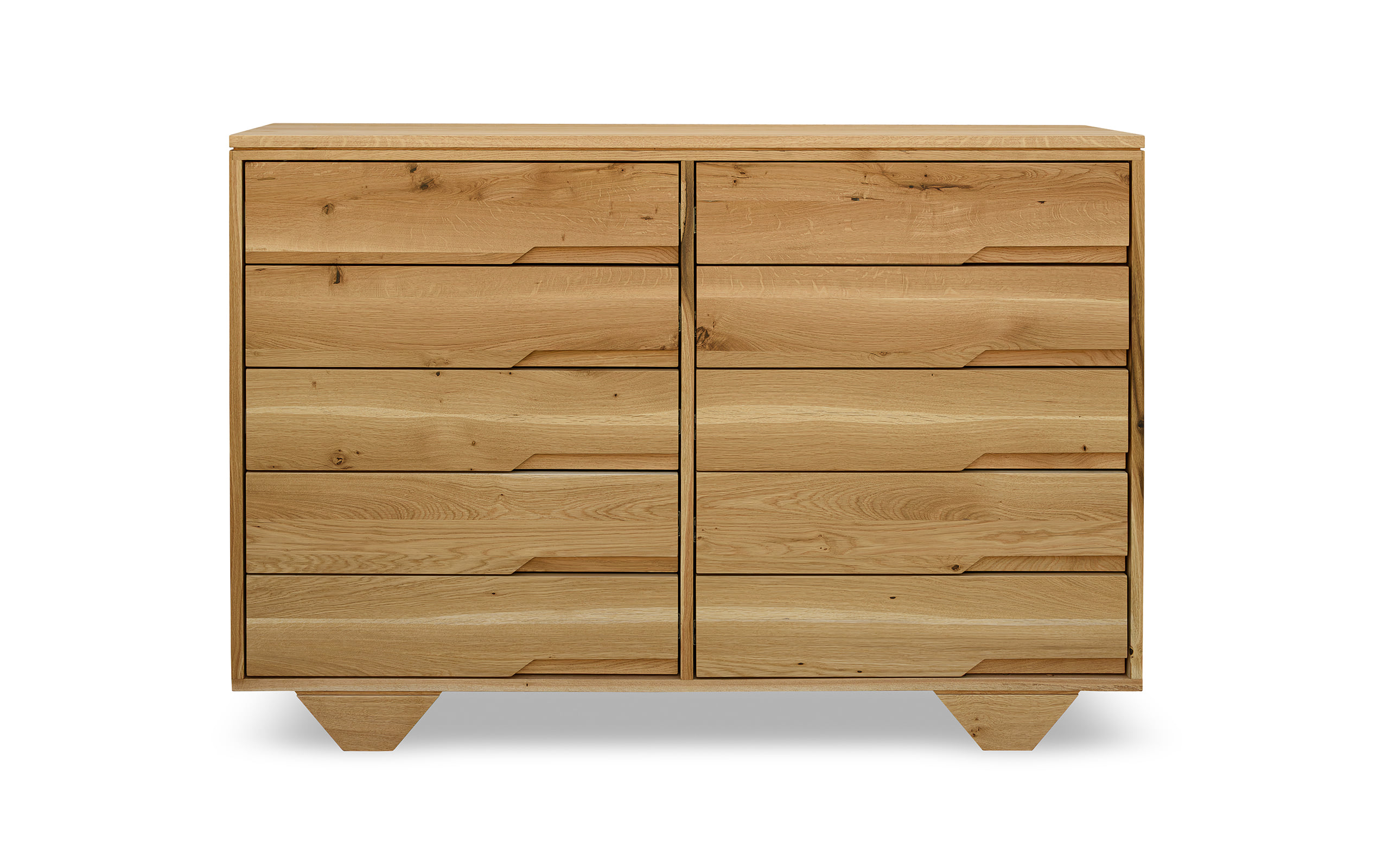 Mai multComodă din lemn de stejar masiv finisată cu poliuretan pe bază ulei.