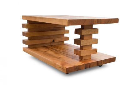 Masa din lemn masiv de cires este produsa la comanda de Atelierul de templarie din Targu Mures. Face parte din categoria de mobilier pentru livinguri si camere de zi. Designul, finisajul premium și esența lemnului masiv de cireș fac ca această piesă mobilier să fie durabilă.