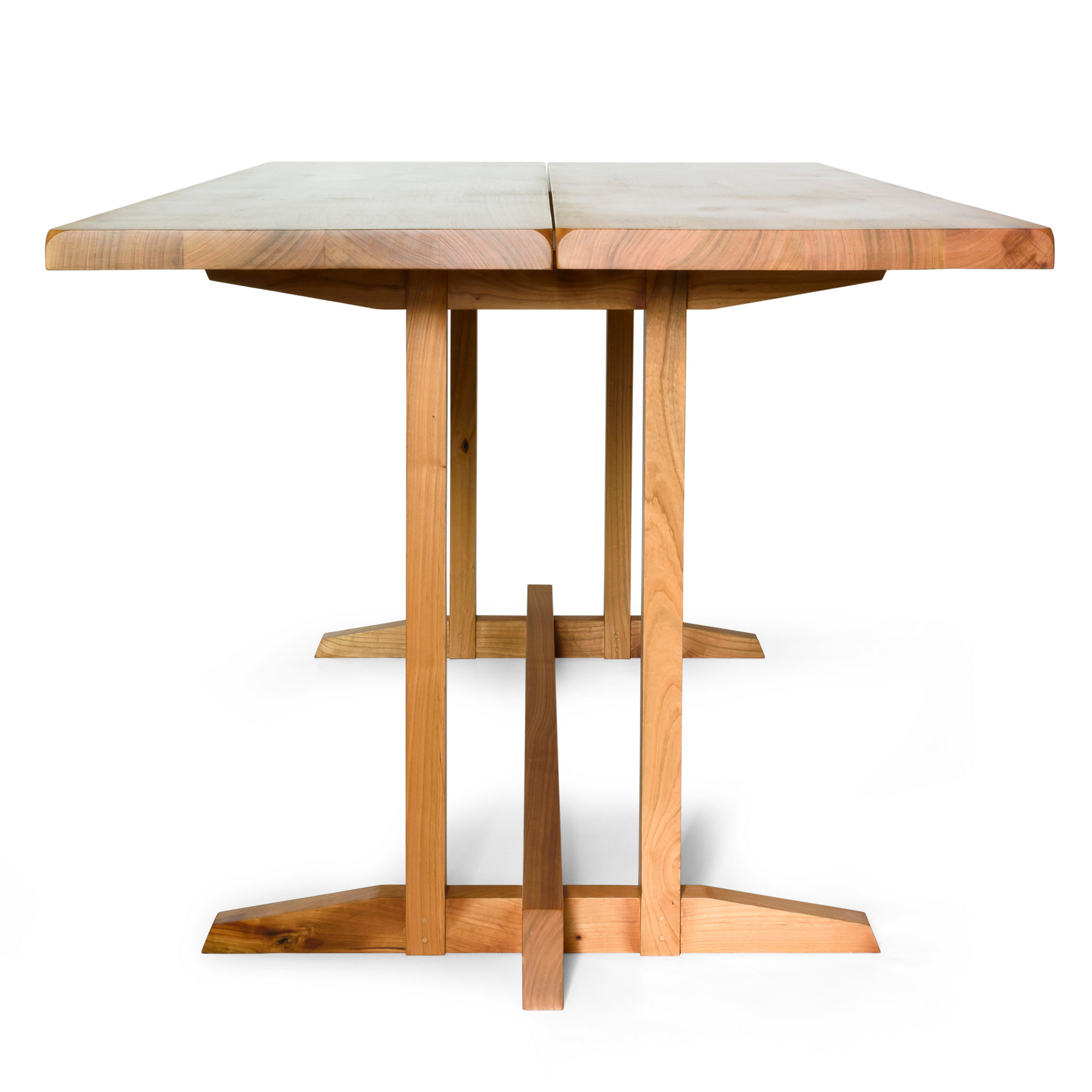 Atelierul de tamplarie din Targu Mures produce mese din lemn masiv pentru living. Realizam la comanda orice piesa de mobilier in stil japonez. Masa de living, inspirata de arhitectul G. Nakashima, este realizata din lemn masiv de cires si finisata cu Danish oil pentru ai pune in evidenta textura si fibra lemnului.