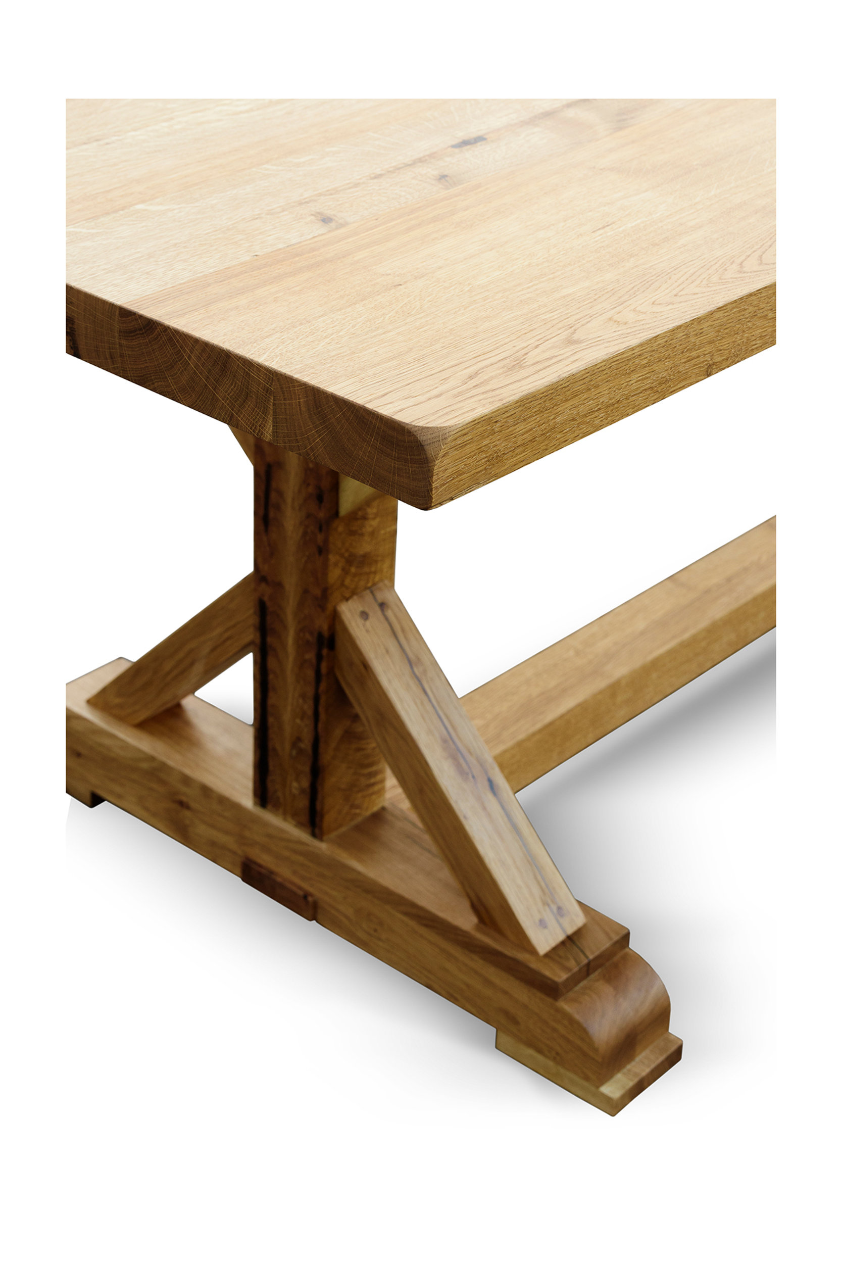 Atelierul de tamplarie din Targu Mures produce mese din lemn masiv pentru livinguri, bucatarii si tersase. Realizam la comanda orice piesa de mobilier din lemn masiv de stejar, fag, cires si alte esente. Masa in stil medieval, este realizata din lemn masiv de stejar si finisata cu Danish oil pentru ai pune in evidenta textura si fibra lemnului.