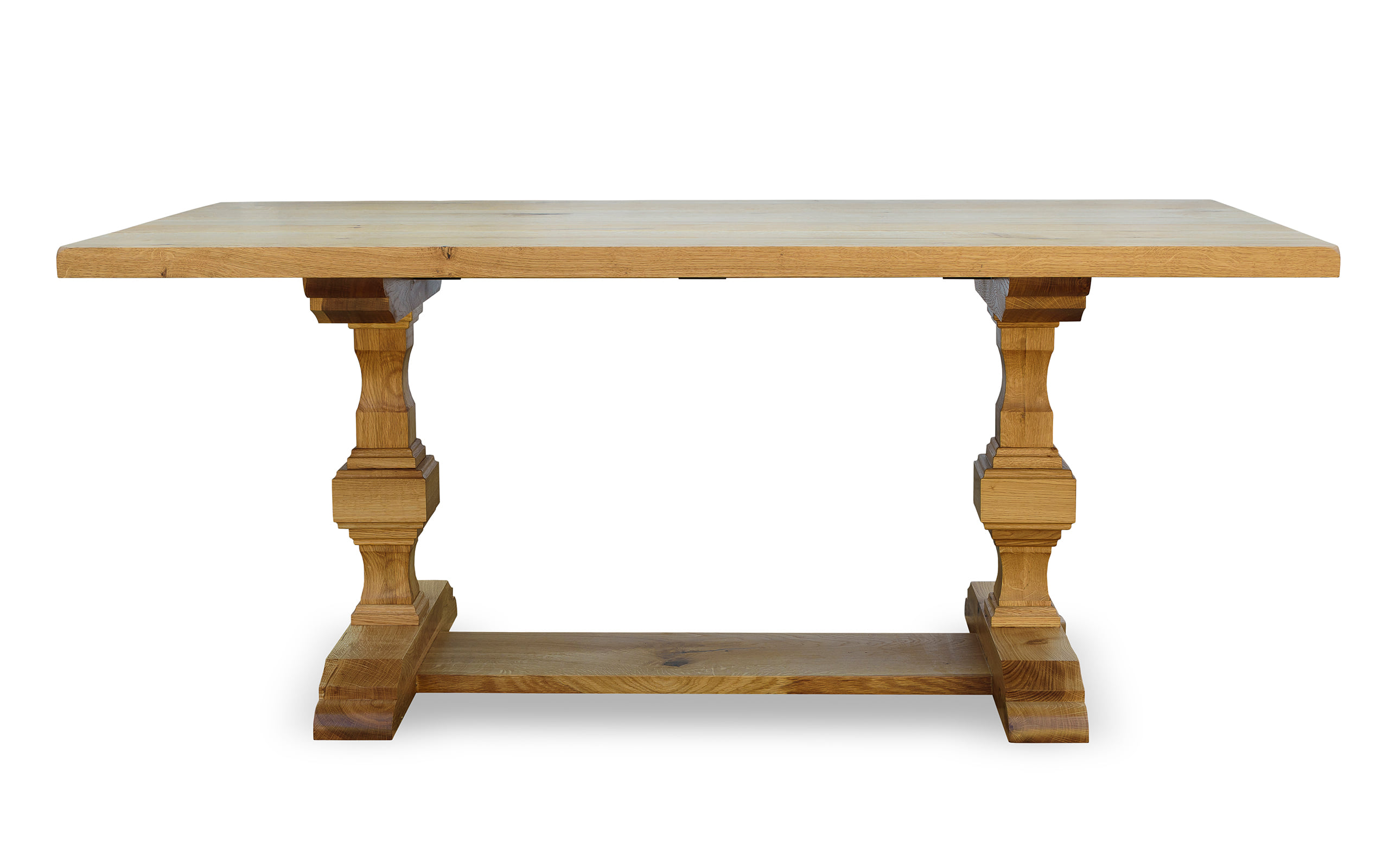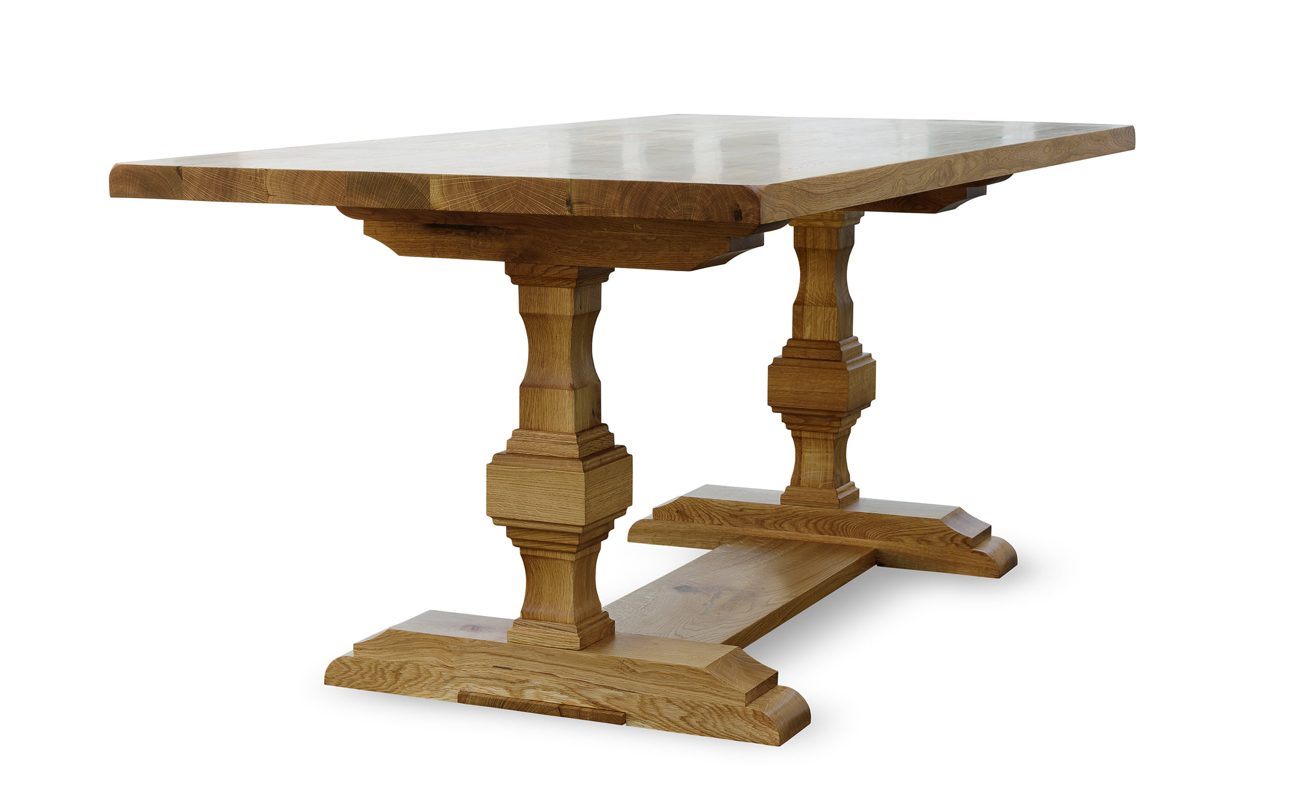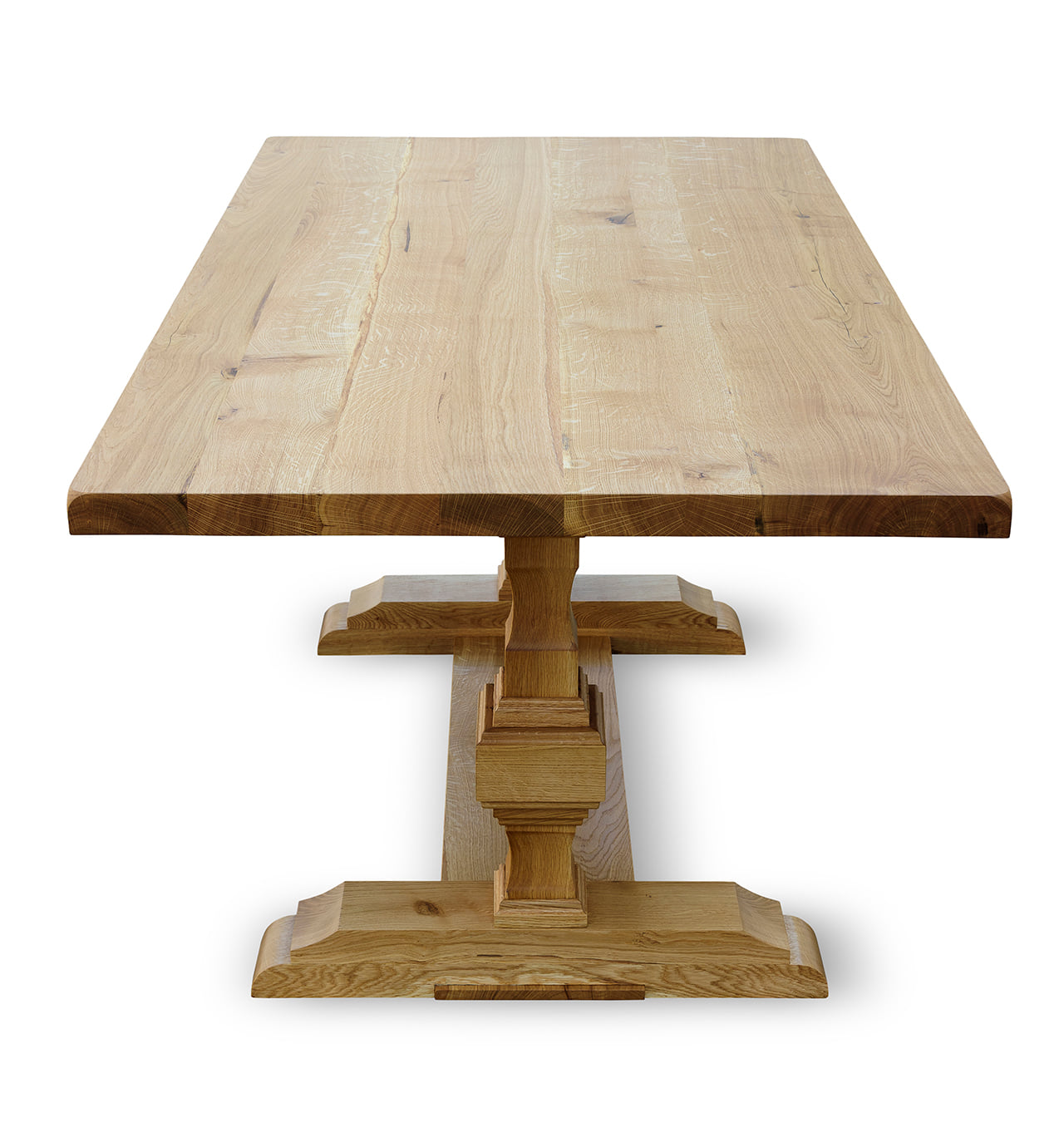 Masa Old Russian Style, este realizata din lemn masiv de stejar si finisata cu Danish oil pentru ai evidentia nervurile si fibra lemnului. Atelierul de tamplarie din Targu Mures produce mese din lemn masiv pentru livinguri, bucatarii si tersase. Realizam la comanda orice piesa de mobilier din lemn masiv de stejar.